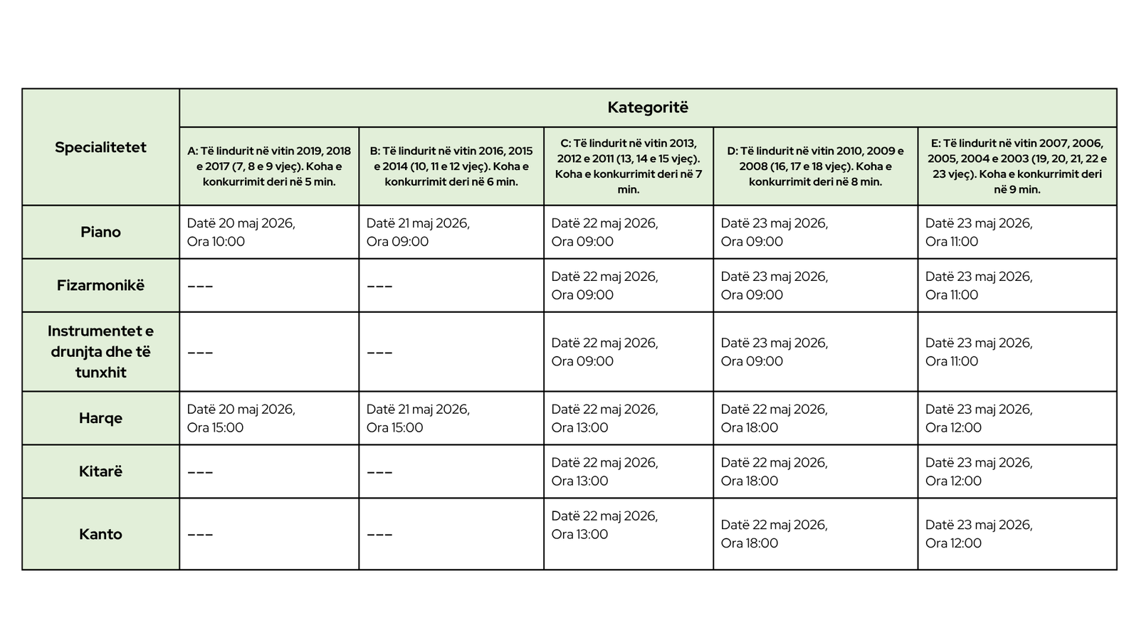 Specialitetet dhe Kategoritë